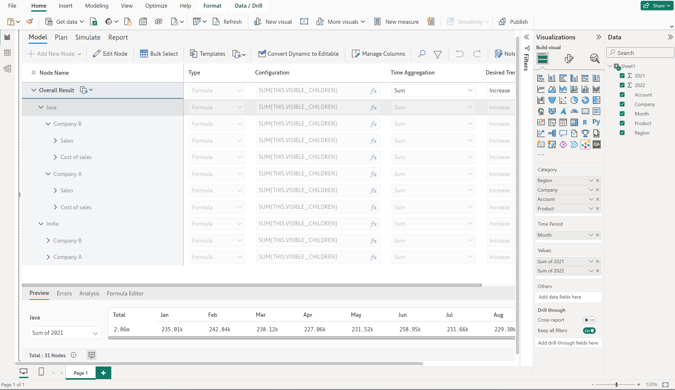 A Dynamic Model gets built from the data source, instantly at the click of a button. The structure of the model is taken from the categories assigned to the visual and each level adds up one over the other.&#x20;
