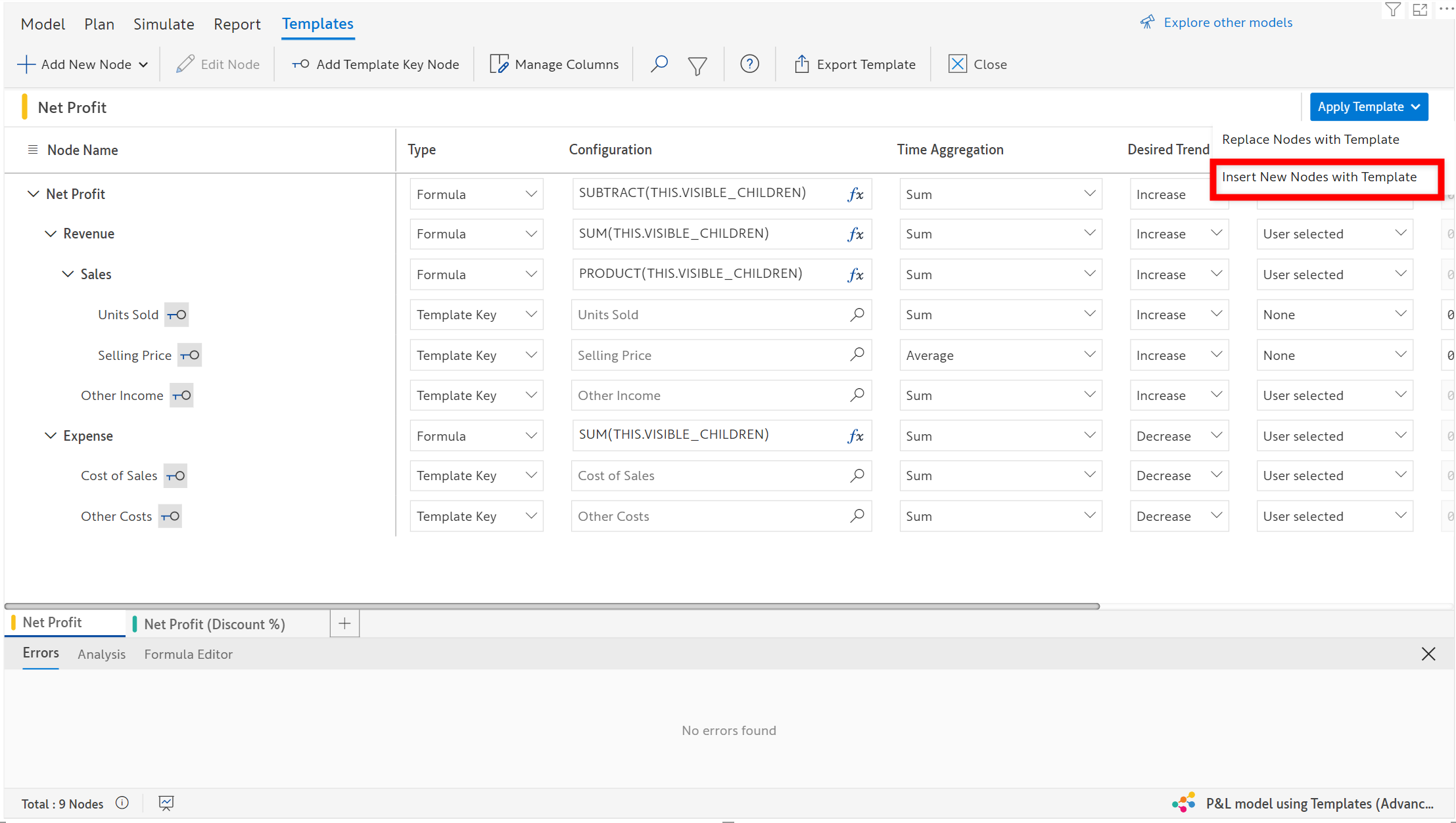 Click on **Templates->Apply Template->Insert New Nodes with** **Template** to insert nodes within the dynamic model.