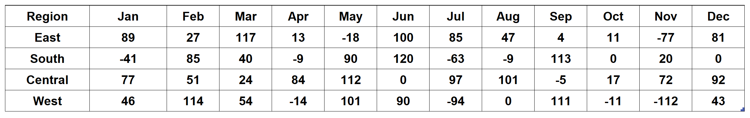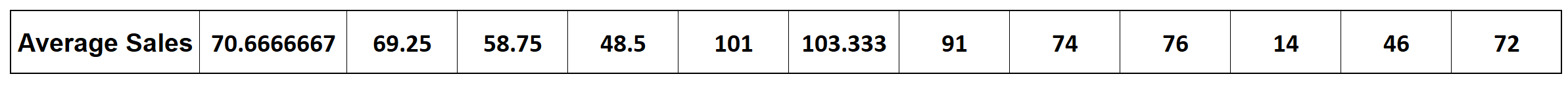 Consider Profit of a particular product across different regions East, South, Central and West to be as follows. Assume if Profit for a particular period is negative, the product was withdrawn from the market and hence that region need not be considered for calculating average Profit.