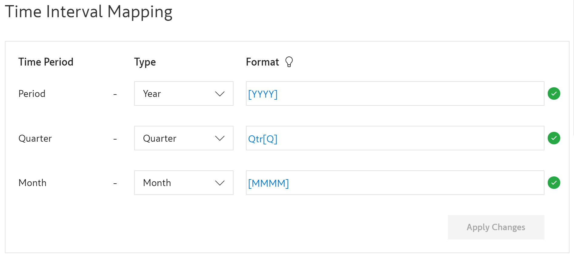 When the green tick is shown verifying that the entered format matches with the available time label, click **Apply Changes**. This ensures that the visual accepts the data in the appropriate time format.