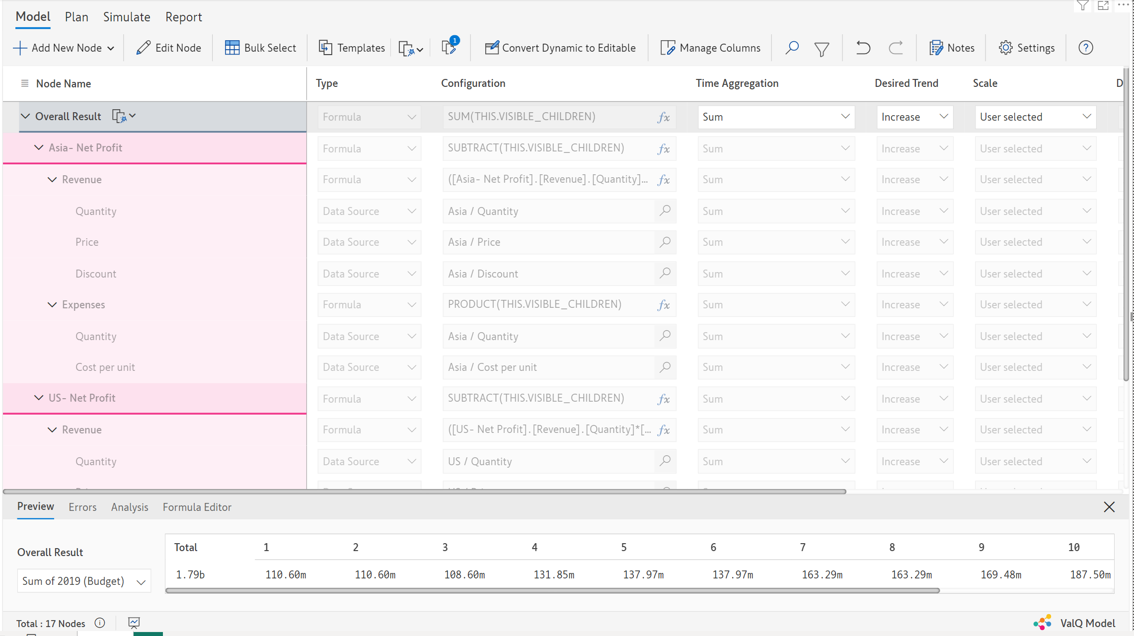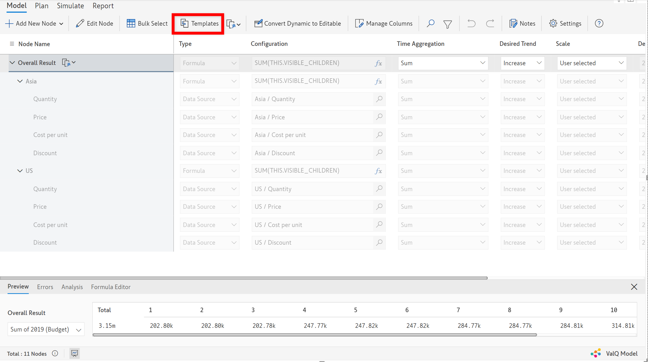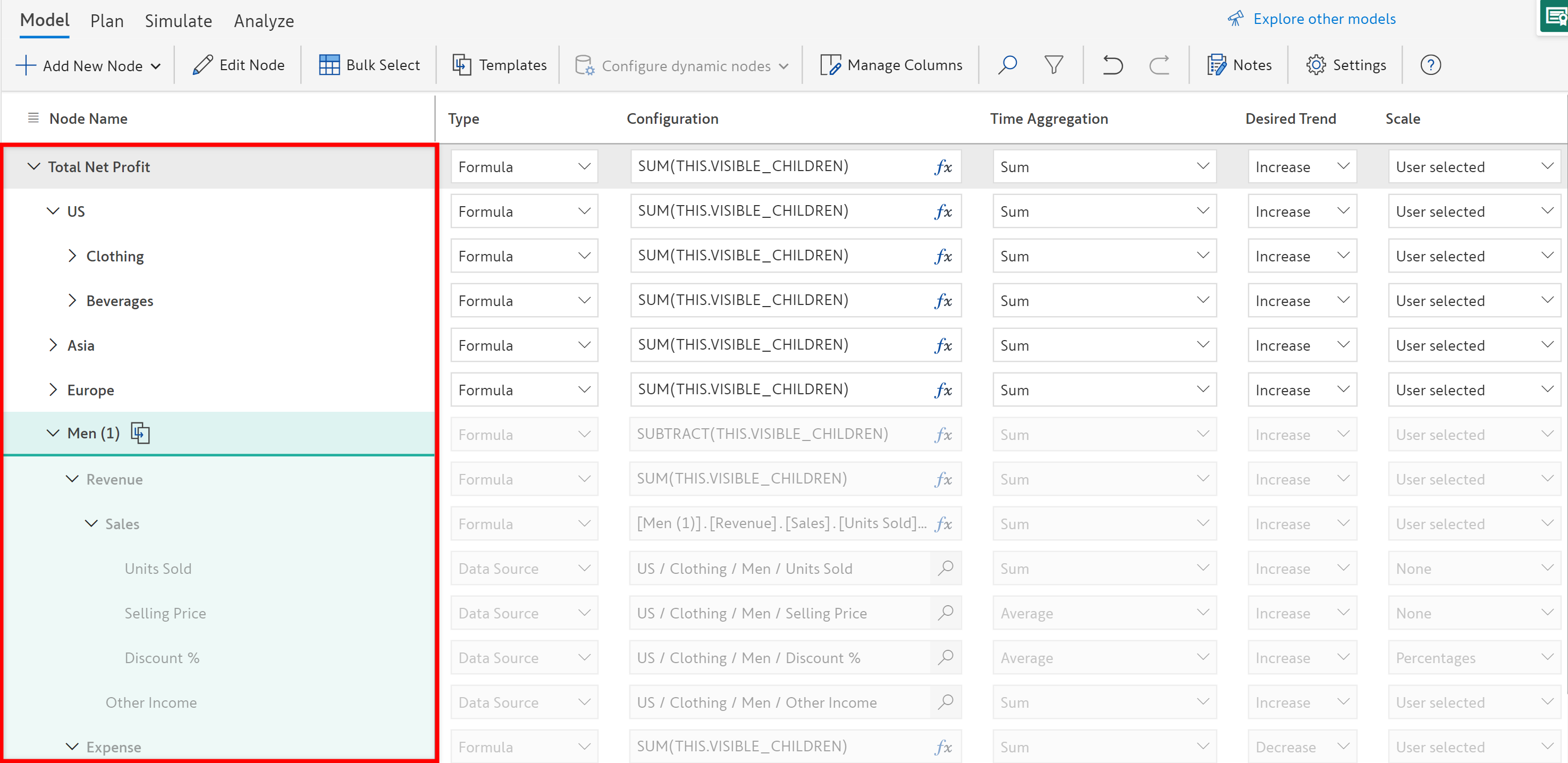 This way each region's profit is calculated and since the model is still dynamic any new region that gets introduced will automatically take the shape of the template structure as we have applied the template to all nodes at the *Region* level.   &#x20;