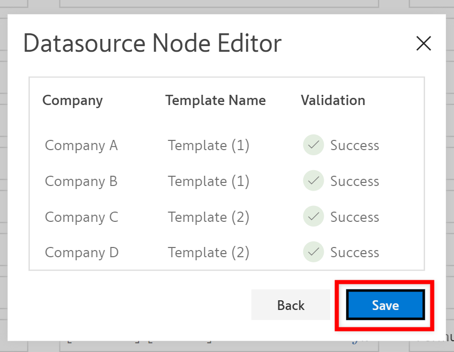To apply the template, the Data source node editor can also be opened by clicking on the below icons.